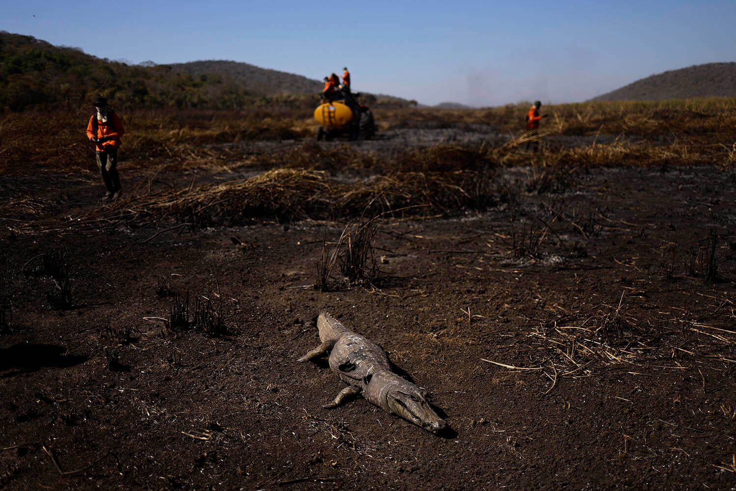 O incêndio matou animais como o jacaré. Foto de Ueslei Marcelino/Reuters.