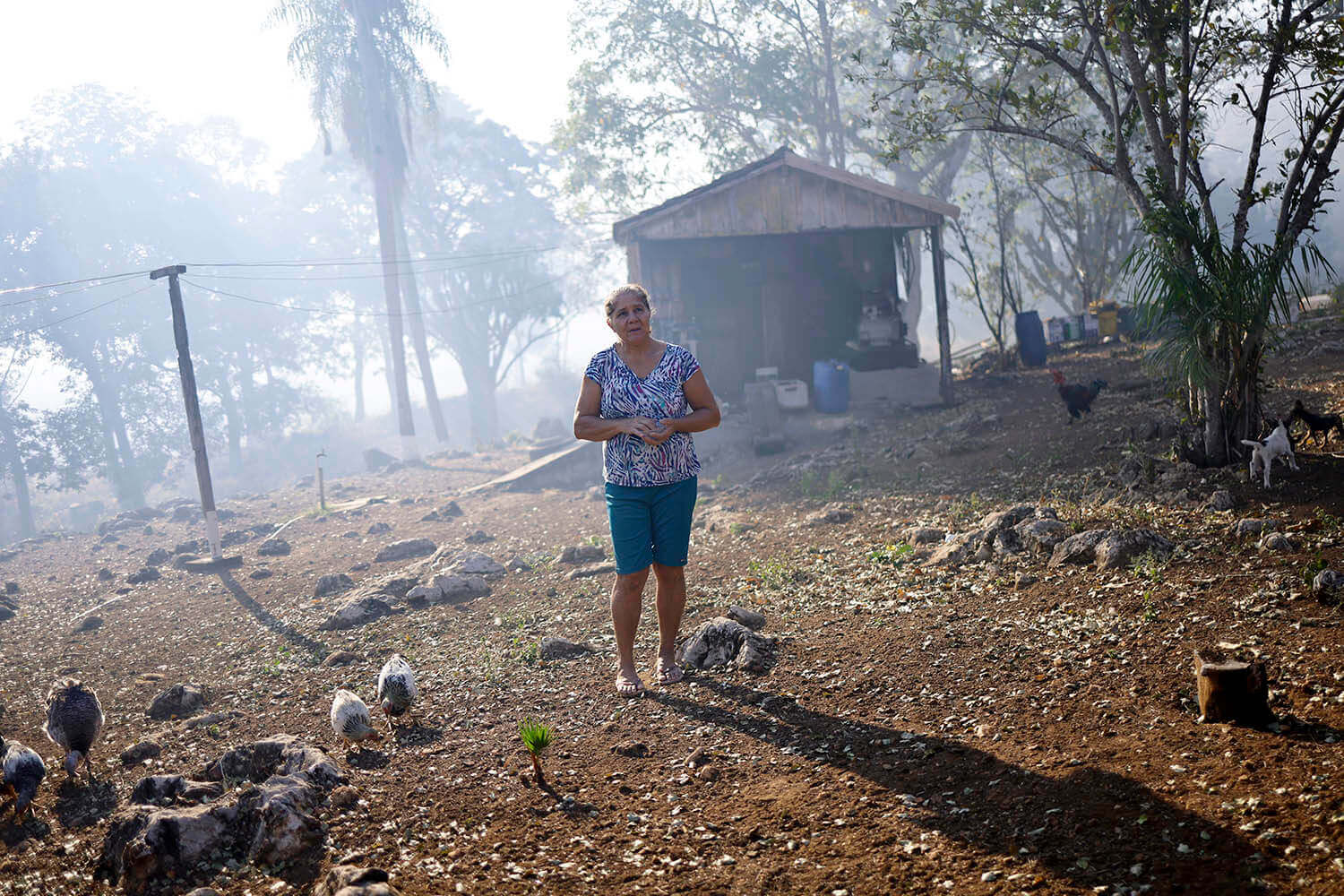 Moradora resiste em meio à fumaça do incêndio no Pantanal. Foto de Ueslei Marcelino/Reuters.