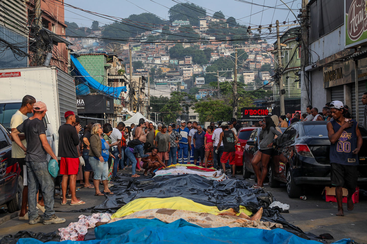 Após retirarem os cadáveres da mata, os moradores os levaram em caminhonetes até a praça São Lucas, no Complexo da Penha. Lá, fizeram questão de enfileirar os corpos, numa cena que lembrou a chacina de Vigário Geral, em 1993, mas muito ampliada.