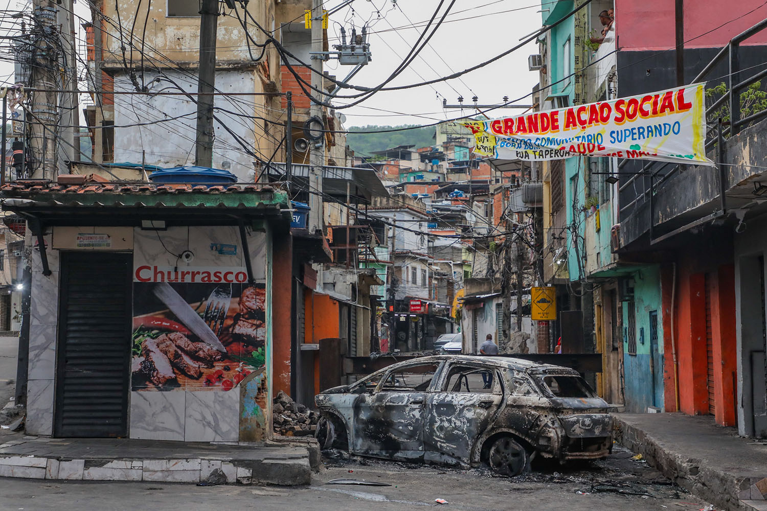 Depois de morar no Alemão de 2000 a 2015, Bruno mudou-se para a favela do Jacarezinho, onde viveu sete anos. Lá, cobriu a operação que deixou 28 mortos, em 2021. Na Rocinha, onde está há quatro anos, também se acostumou a registrar cenas de violência, como casas com marcas de tiros, sangue no chão, cápsulas de bala espalhadas pela rua. Mas nada se compara com o que aconteceu agora.