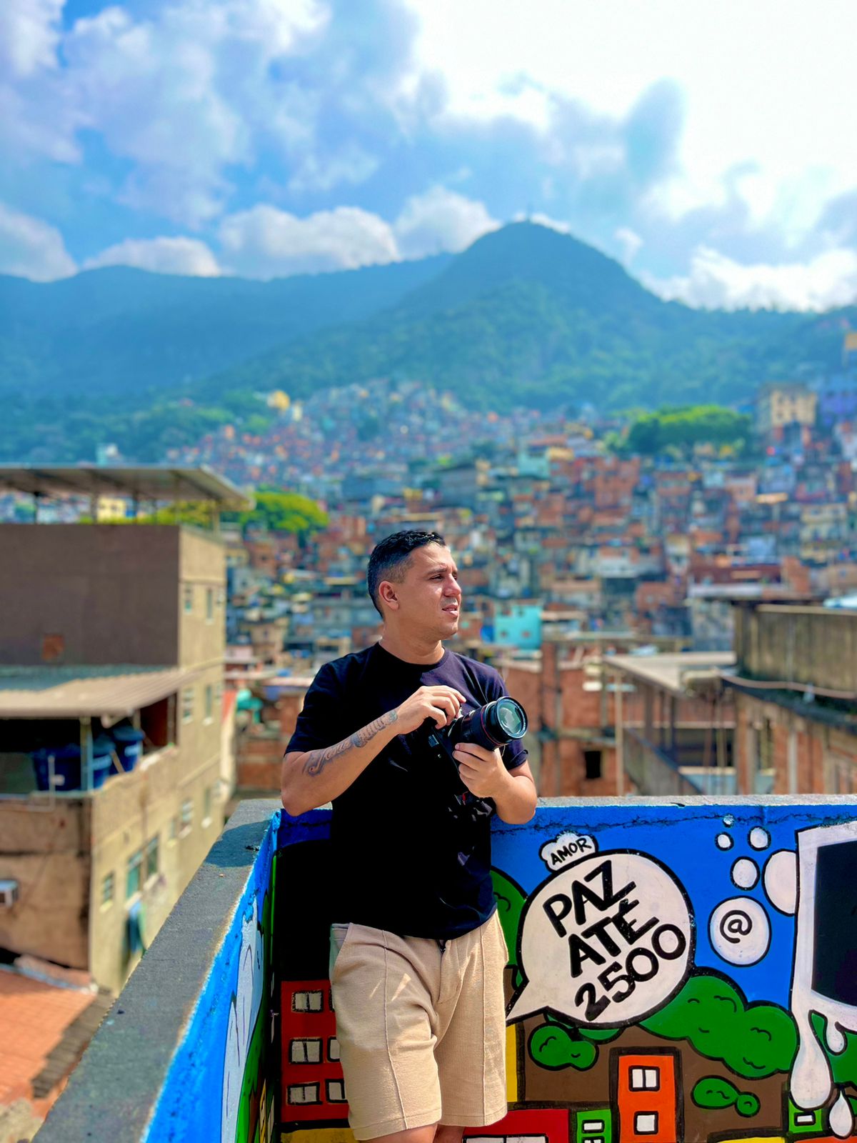 Ele se diz impressionado com a vitalidade da Rocinha, onde vive atualmente.