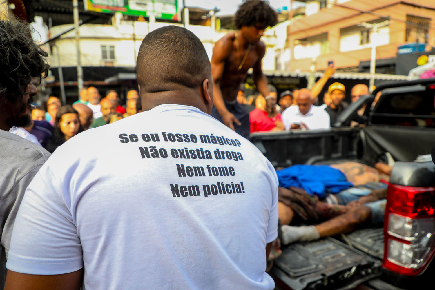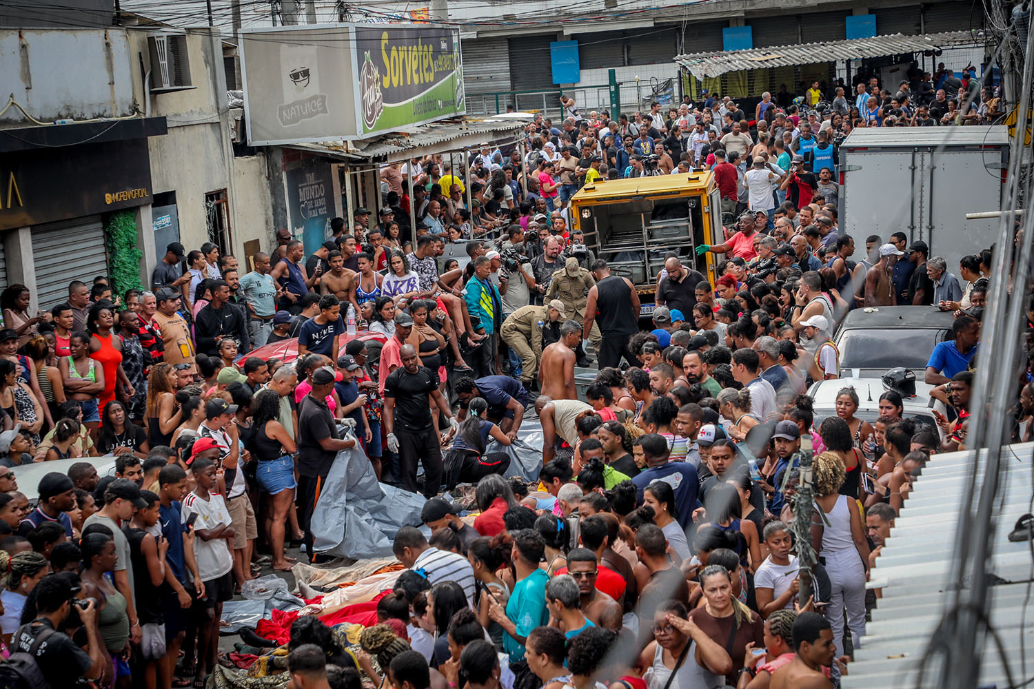Após retirarem os cadáveres da mata, os moradores os levaram em caminhonetes até a praça São Lucas, no Complexo da Penha. Lá, fizeram questão de enfileirar os corpos, numa cena que lembrou a chacina de Vigário Geral, em 1993, mas muito ampliada.
