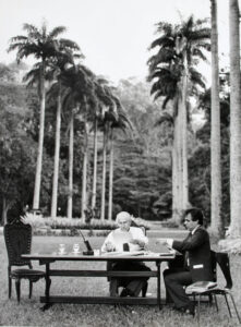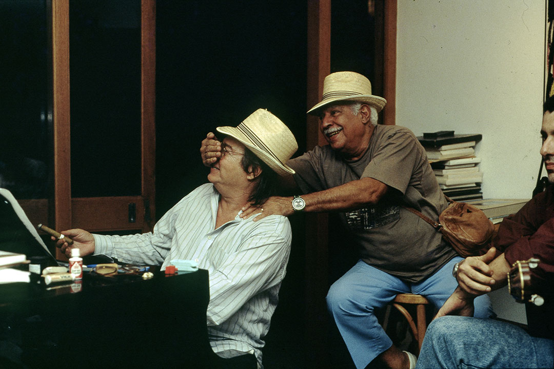 Tom Jobim ensaia junto com Dorival Caymmi em sua casa, na véspera de um show no Arpoador. Jornal do Brasil. 1992